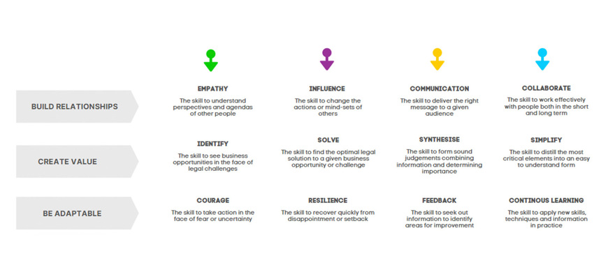 - secondly, competencies which will enable a lawyer to adapt to the changing legal landscape and to help them develop and thrive in their legal career;