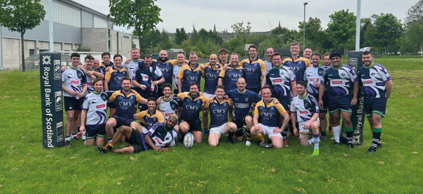 On a beautiful spring afternoon in May the Law Society of Scotland Rugby Football Club made its long awaited return to the field, following a Covid-enforced hiatus of almost four years, taking on the Scottish Parliament RFC who play regular games against other parliament sides from across Europe.