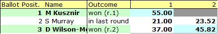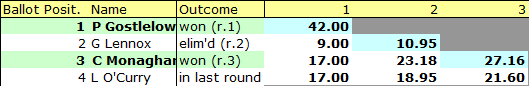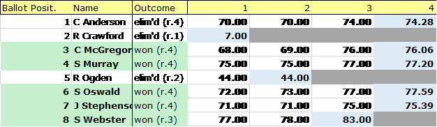 - Result – all remaining candidates win in Round 4 on elimination of C Anderson
